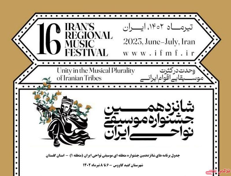 ترکمن سسی - شانزدهمین جشنواره منطقه ای موسیقی نواحی ایران (منطقه یک) ۶ تا ۸ تیرماه ۱۴۰۲به میزبانی گلستان در مجموعه فرهنگی تجاری وارنا شهر گنبدکاووس جنب دریاچه مصنوعی برگزار می شود.