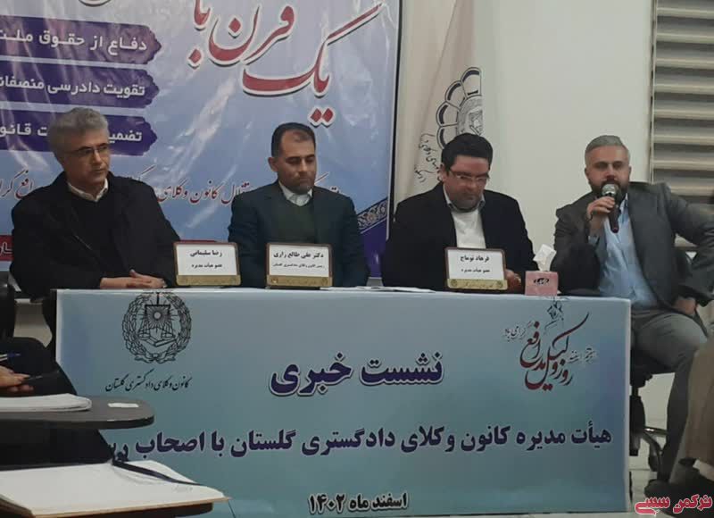 فرهاد توماج، عضو هیئت مدیره کانون وکلای دادگستری گلستان نیز در این نشست گفت: کانون وکلا قدمتی بیش از 100 سال دارد و میراث دار استقلالی هستیم که به نفع جامعه و مردم است.