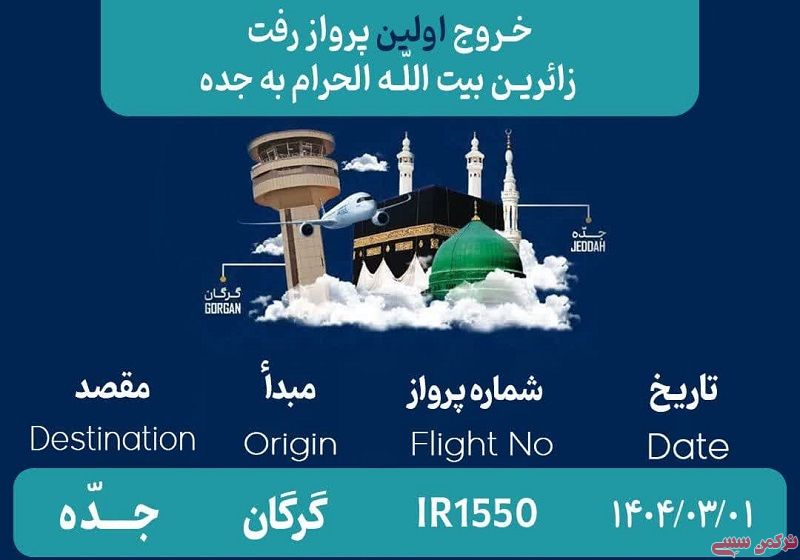 ترکمن سسی - نخستین گروه از زائران بیتالله الحرام از استان گلستان، ساعت ۰۴:۳۵ صبح پنجشنبه، ۰۱ خرداد 1404 از فرودگاه گرگان عازم جده شدند.