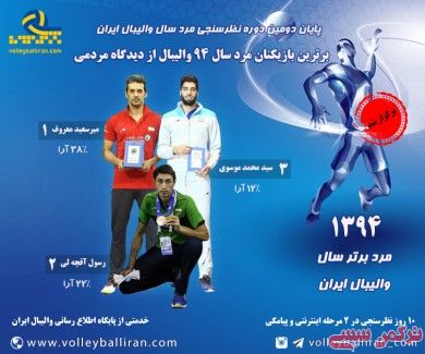 در مرحله دوم نیز که از تاریخ 23 تا 26 اسفندماه و به صورت پیامکی برگزارشد، شرکت کنندگان بازیکن موردنظر خود را انتخاب کردند و در پایان 3 بازیکن برتری که بیشترین رای را به خود اختصاص داده بودند به عنوان بازیکنان برتر والیبال مردان ایران معرفی شدند. بر این اساس، آقایان میرسعید معروف با 38 درصد آرا، رسول آقچه لی با 22 درصد و سید محمد موسوی با کسب 12 درصد آرا به ترتیب های رتبه های اول تا سوم را به خود اختصاص داده ومتخبین مردم در سال 94 معرفی شدند.