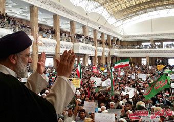 به گزارش تركمن سسي ، مردم حاضر در مصلی گرگان با شعارهای "ابراهیم بت‌شکن، بت فساد را بشکن"، "لطف امام هشتم، تغییر به نفع مردم"‌ و "سید مظلوم ما، رئیس‌جمهور ما" به استقبال حجت‌الاسلام رئیسی رفتند.