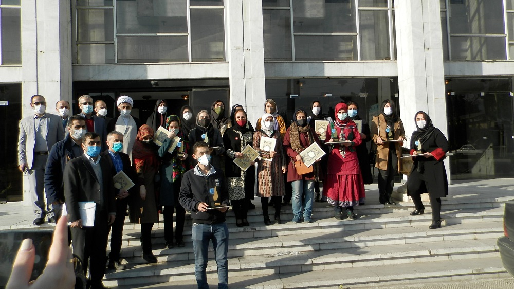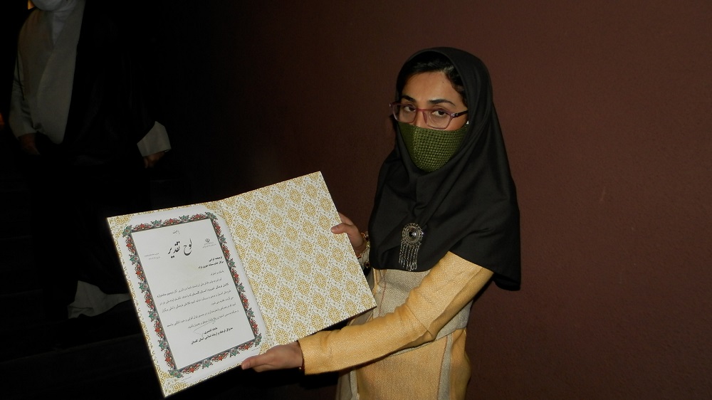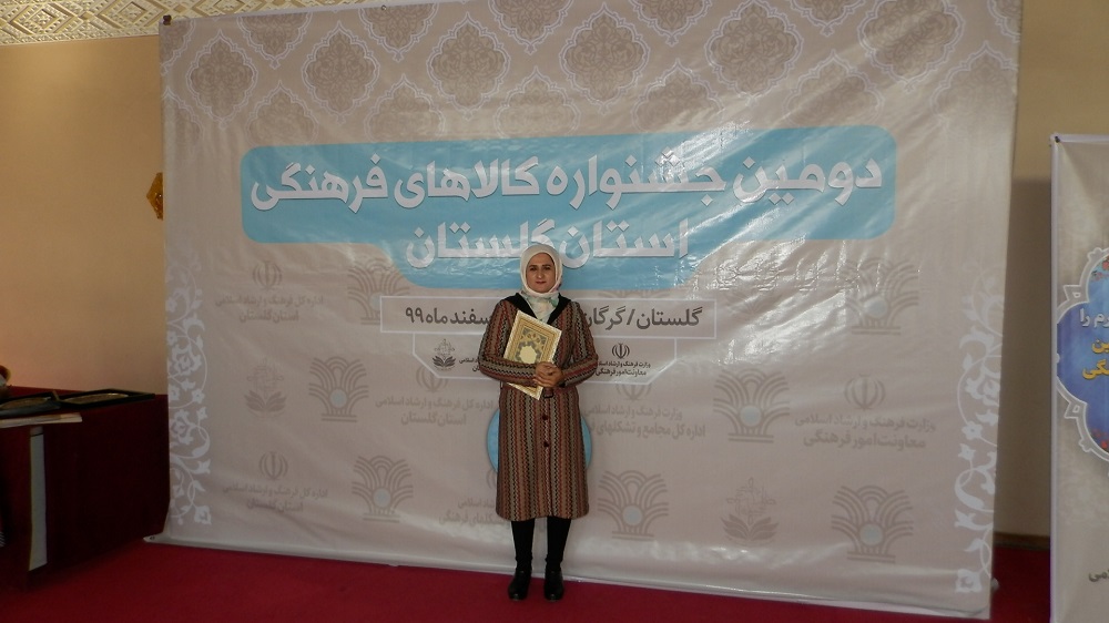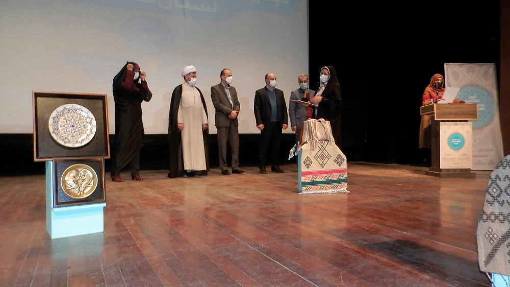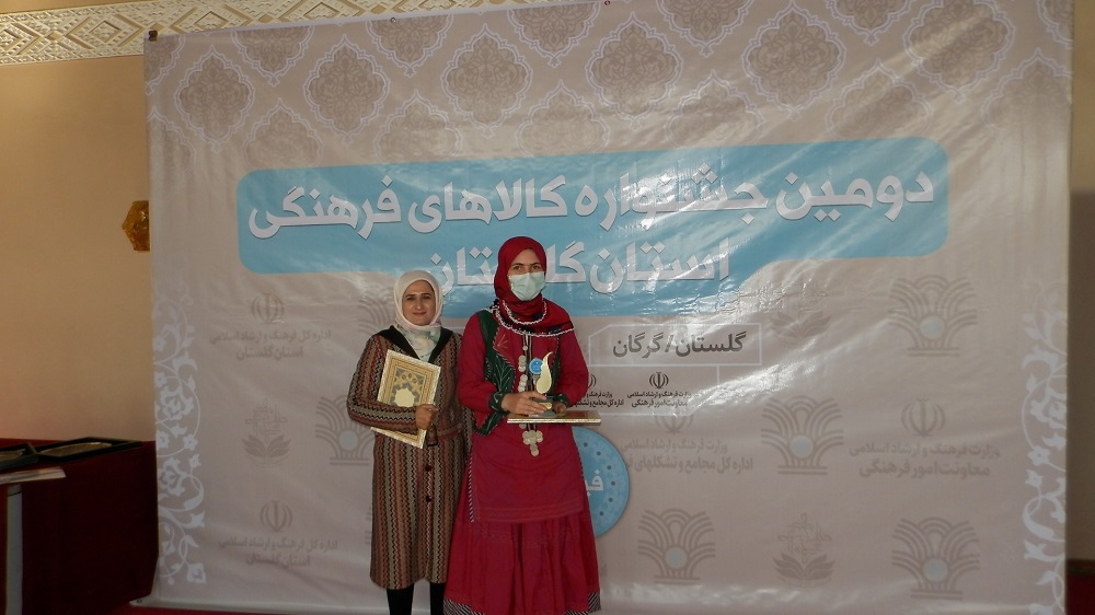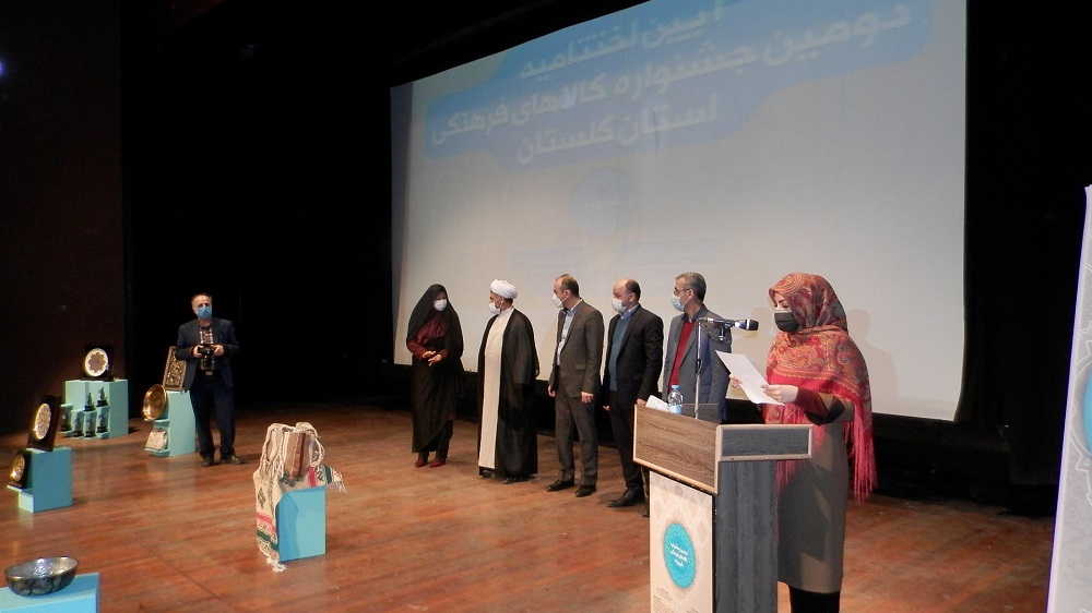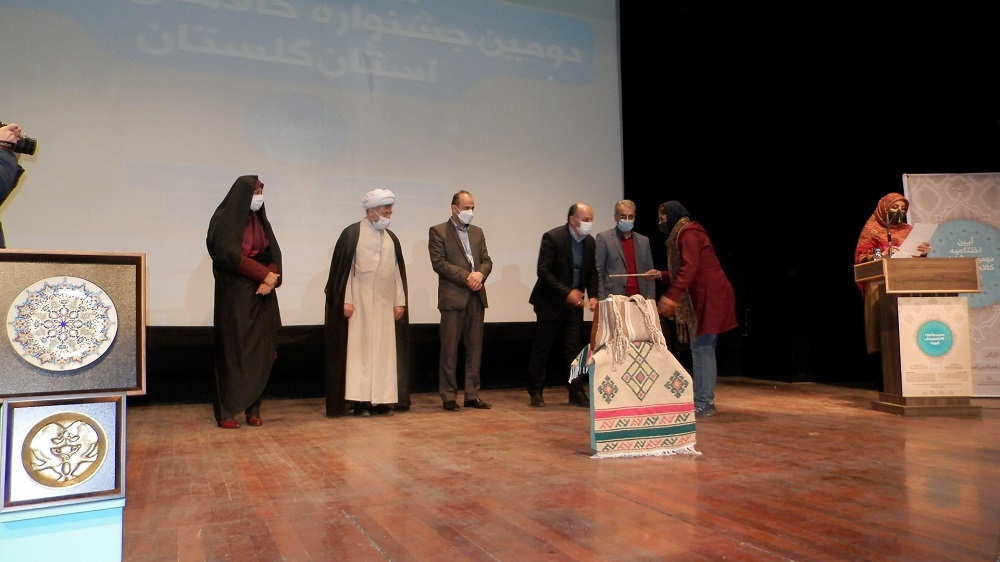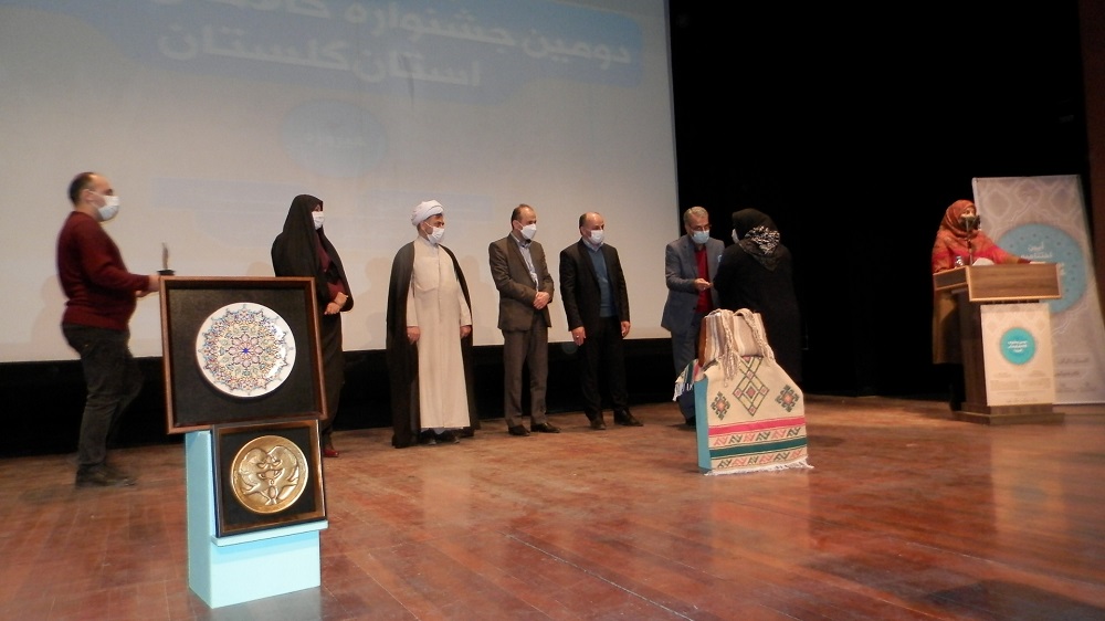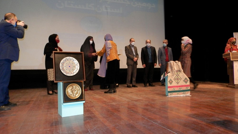 گرگان : ترکمن سسی - آیین اختتامیه دومین جشنواره کالاهای فرهنگی (فیروزه) استان گلستان با حضور جمعی از مسئولان و هنرمندان با رعایت کامل دستورالعمل های بهداشتی، عصر شنبه 16 اسفندماه در تالار فخرالدین اسعد گرگانی برگزار شد.