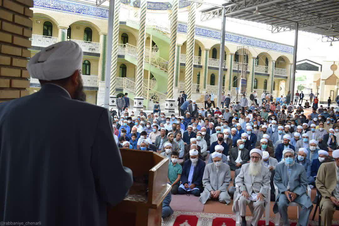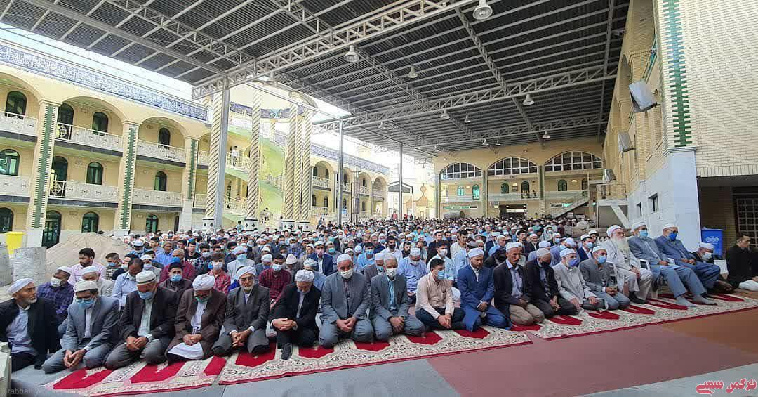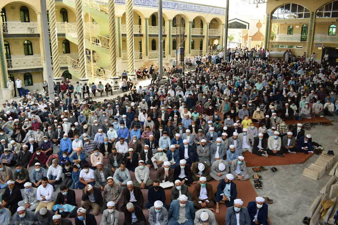 مراوه تپه : ترکمن سسی - نماز عید سعید فطر صبح امروز پنج شنبه 23 اردیبهشت ماه 1400 همزمان با اولین روز ماه شوال با رعایت شیوهنامههای بهداشتی و فاصلهگذاری اجتماعی در مساجد، مصلی ها و عیدگاه های گلستان برگزار شد.