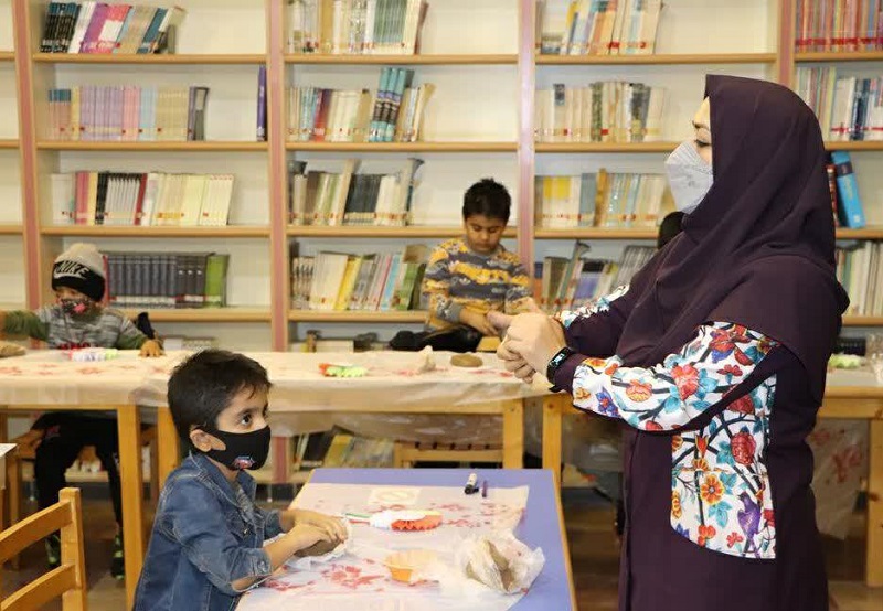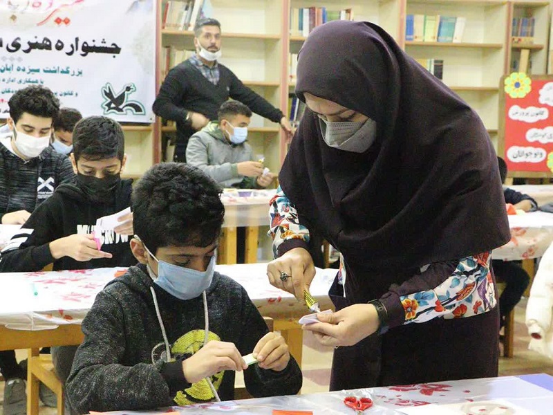 در ادامه سبیکه سادات میرقاسمی و مطهره کریمی، مربی مسوول و مربی فرهنگی مرکز شماره گرگان با انجام فعالیت کاردستی و ساخت پرچم ایران برای بچهها و با حضور مادرانشان، آنها را با این تکنیک آشنا ساختند و نوجوانان حاضر در این برنامه طرح پرچم ایران را با برش دادن بر روی مقوا آماده کردند.