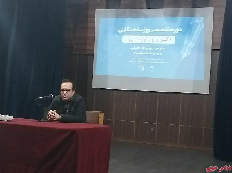 به گزارش خبرنگار ترکمن سسی، ایرج رمضانی مسئول اداره رسانه اداره کل فرهنگ و ارشاد اسلامی گلستان قبل آغاز این دوره آموزشی در جمع شرکت کنندگان دوره گفت: این دوره آموزشی تخصصی به مدت ۱۲ ساعت با مشارکت اداره کل فرهنگ و ارشاد اسلامی و خانه مطبوعات و رسانه های گلستان با تدریس مهرداد خلیلی به مدت دو روز در سالن نگاه تالار فخرالدین اسعد گرگانی برگزار می شود.