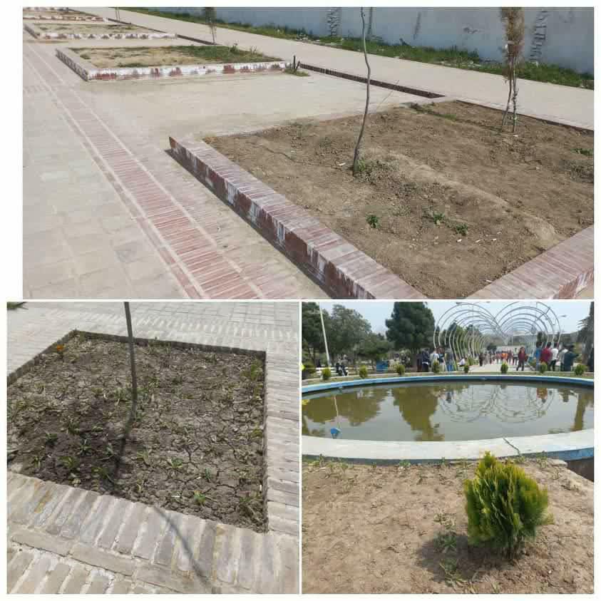 قسمت هایی که به صورت باغچه درست شده بود ولی متاسفانه نه درختکاری و نه گلکاری مناسبی انجام نشده بود ، مصالح ساختمان هایی که در محوطه و کنار پارک بچه ها ریخته شده و جمع آوری نشده بود.