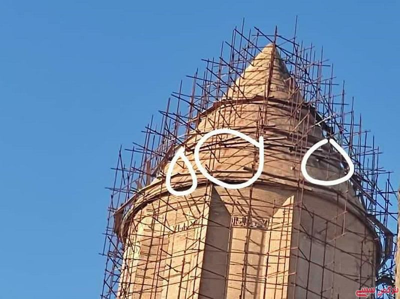 بعد از گذشت مدت زمان طولانی ، اکنون با بارش های پاییزی و فعل و انفعالات شیمیایی داربست زنگ زده و شیرابه زنگ میله ها بر بام برج می ریزد، موضوعی که ممکن است اثرات منفی بر روی این بنای تاریخی داشته باشد یا شاید اصلا موضوعی چندان جدی نباشد.
