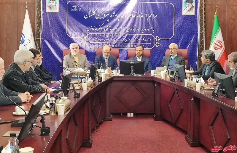 ترکمن سسی - تفاهم نامه اجرای پروژه پتروشیمی گلستان با حضور دکتر زنگانه استاندار گلستان و دکتر علی عسگری مدیرعامل شرکت صنایع پتروشیمی خلیج فارس به امضا رسید.