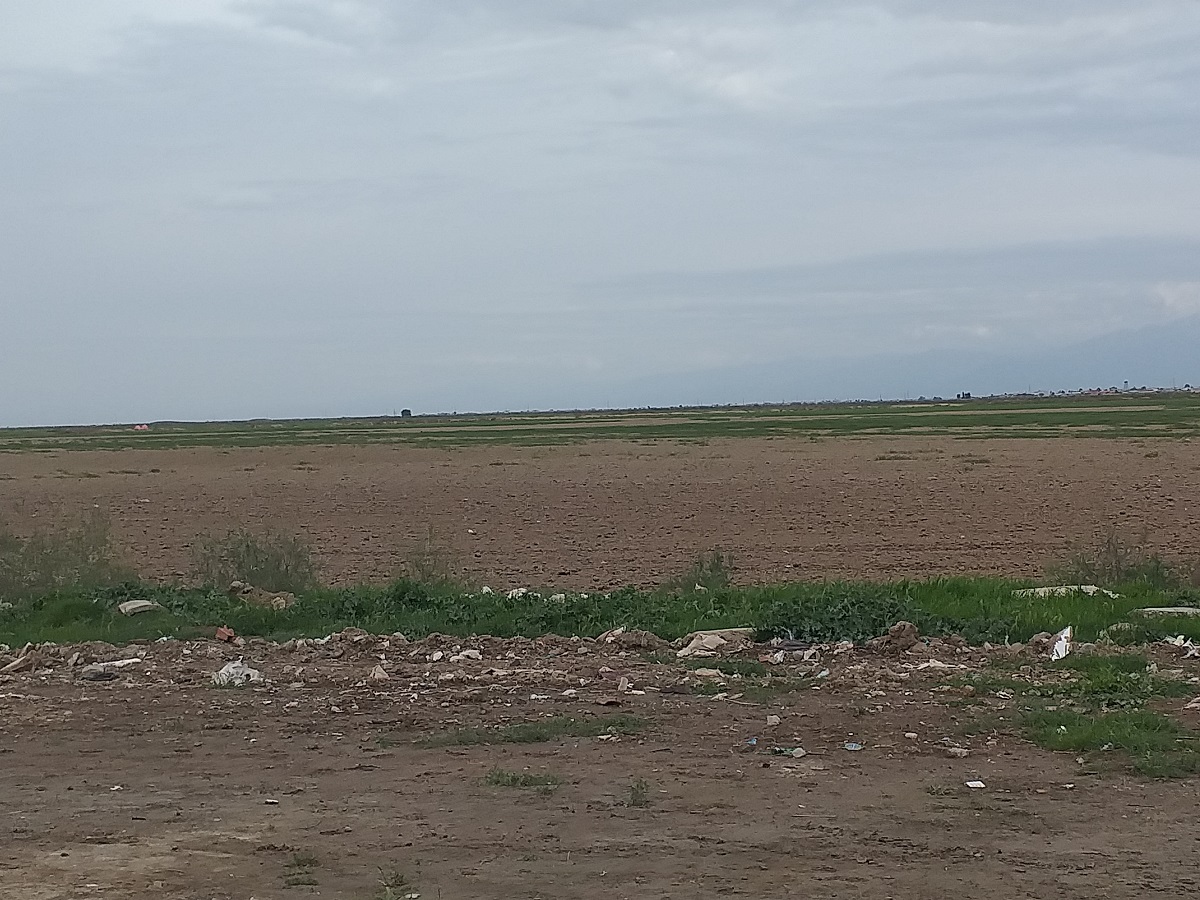 ترکمن سسی - اراضی کشاورزی زیر کشت گندم و جو در شمال آق قلا، به دلیل خشکسالی به صورت پراکنده سبز شده اند یا در بسیاری جاها سبز نشده اند.