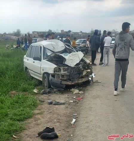 به گزارش خبرنگار ترکمن سسی، در این تصادف که حدود ساعت ۱۳:۴۵ امروز دوشنبه رخ داد دو جوان راکب موتورسیکلت، هر دو اهل روستای عرفان آباد به شدت با خودروی پراید برخورد کردند.