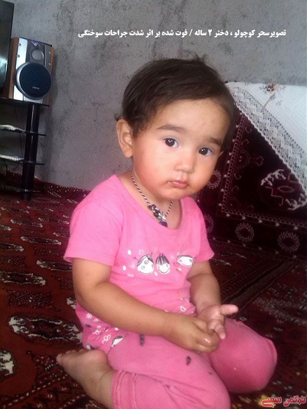 این خانه استیجاری بدون امکانات آب لوله کشی شده ، گاز و برق بوده و تلاش اهالی برای خاموش نمودن آتش تنها با امکانات اولیه و آب جوی حاصل از بارندگی های اخیر صورت گرفته است. گفتنی است تمامی اثاث و مایحتاج زندگی این خانواده براثر آتش سوزی بکلی از بین رفته است. متاسفانه دیشب نیز باخبر شدیم که این کودک دوساله (سحر) بر اثر شدت جراحات سوختگی در بیمارستان سوختگی شهید زارع ساری جان خودرا از دست داده و امروز عصر (جمعه20آذر) در خانه ابدی خود آرمید . دیگر کودک خانواده ،گل آرا 4 ساله نیز دچار سوختگی از ناحیه دست شده است.