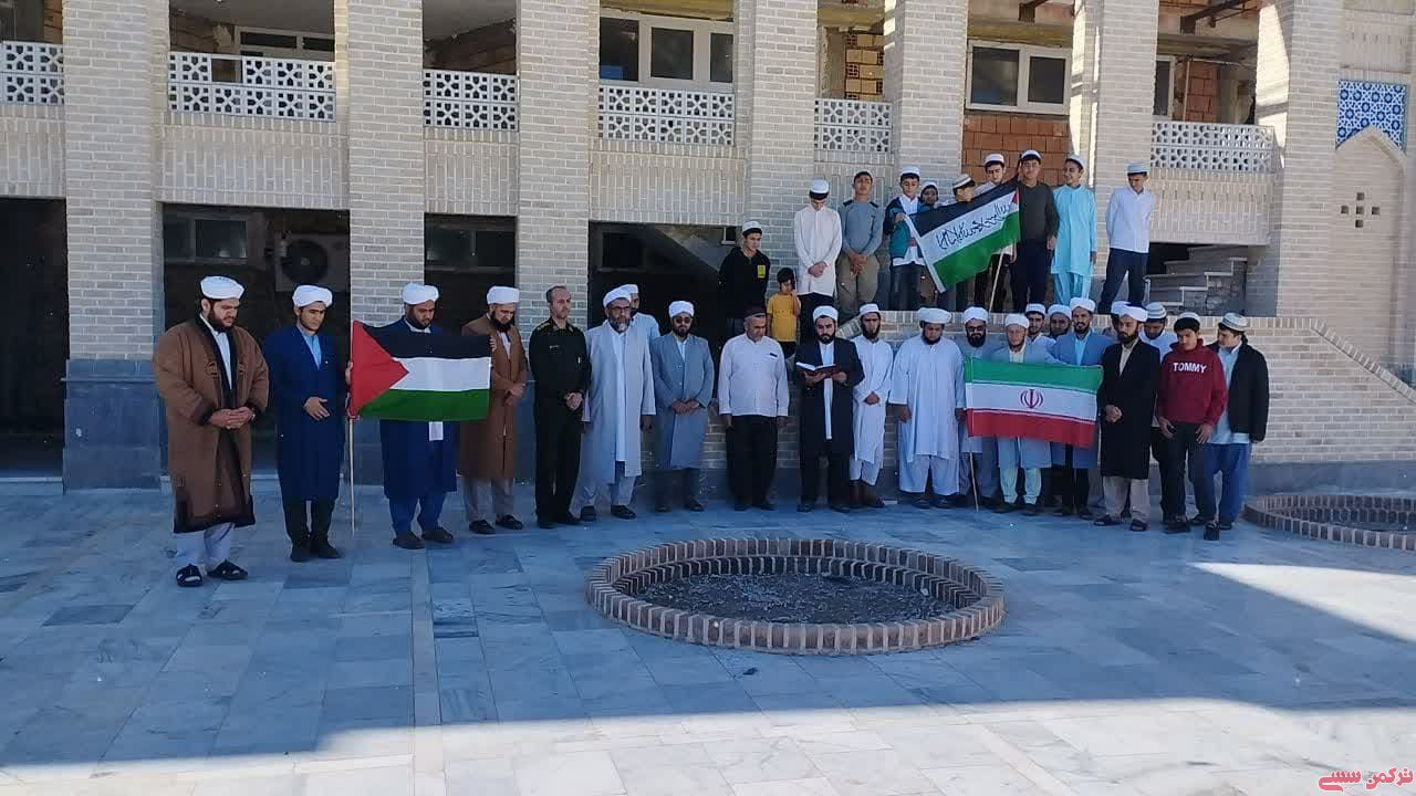 ترکمن سسی - طلاب و مدرسان حوزه علمیه اهل سنت خاتم الانبیا شهر فراغی نیز همرمان با سایر مدارس علوم دینی اهل سنت گلستان، صبح امروز شنبه ۲۹ مهر با تعطیلی مدرسه دینی، علیه جنایات رژیم کودک کش اسراییل در بمباران بیمارستان المعمدانی غزه و شهادت زنان و کودکان بیگناه تجمع اعتراضی برگزار کردند.