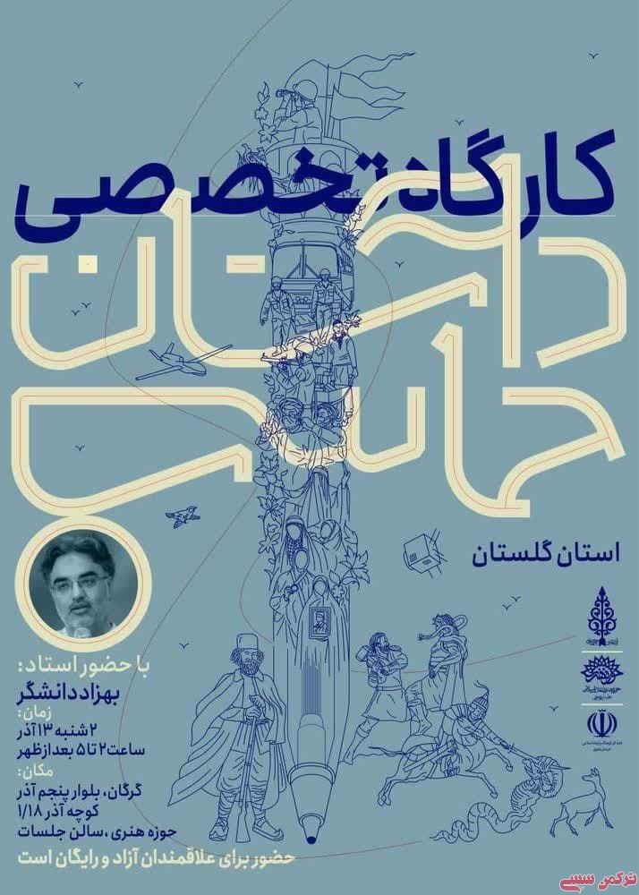 کارگاه تخصصی داستان حماسی به همت حوزه هنری گلستان برگزار می شود و شرکت در آن برای عموم علاقمندان آزاد و رایگان اعلام شده است.