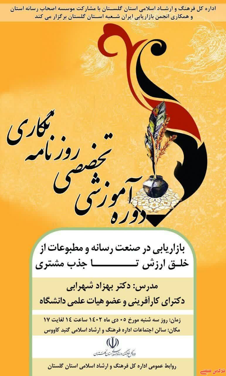 ترکمن سسی - مدیرعامل موسسه اصحاب رسانه استان گلستان گفت: دوره آموزشی تخصصی روزنامه نگاری باعنوان بازاریابی در صنعت رسانه عصر سه شنبه ۵ دی در گنبدکاووس برگزار می شود.