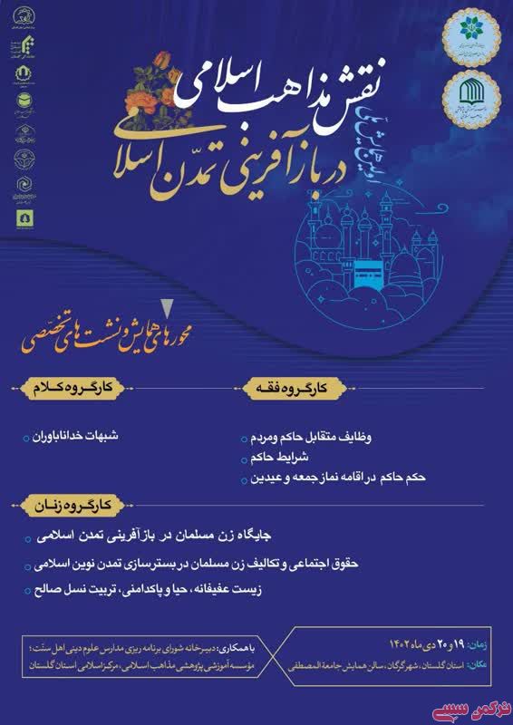 وی در خاتمه افزود: اولین همایش ملی نقش تقریب مذاهب اسلامی در بازآفرینی تمدن اسلامی با همکاری: دبیرخانه شورای برنامه ریزی مدارس علوم دینی اهل سنت، موسسه مذاهب اسلامی قم، استانداری گلستان، مرکز اسلامی استان گلستان، جامعه المصطفی العالمیه گلستان، حوزه علمیه برادران استان، مرکز تخصصی حضرت ولیعصر(عج) گلستان، صدا و سیما مرکز گلستان، حوزه علمیه خواهران استان، مدرسه علمیه تخصصی الزهرا (س) گرگان و دانشگاه بین المللی مذاهب اسلامی واحد گنبد کاووس، در روزهای سه شنبه و چهارشنبه ۱۹ و ۲۰ دی ماه 1402 در سالن همایش جامعه المصطفی برگزار می شود.