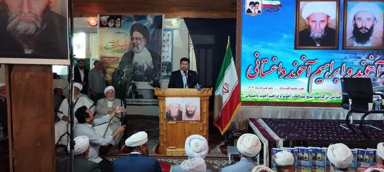 به گزارش خبرنگار ترکمن سسی، «امان محمد باشقره» عصر پنج شنبه 10 خرداد 1403 در نخستین همایش بزرگداشت شیخ عبدالقادر آخوند و ابراهیم آخوند داغستانی در حوزه علمیه عرفانی شهر گلیداغ، اظهار کرد: نکوداشت بزرگان و علمای دینی یعنی تکریم خود دین و قرآن کریم است و همه مدیون این عالمان وارسته هستیم.