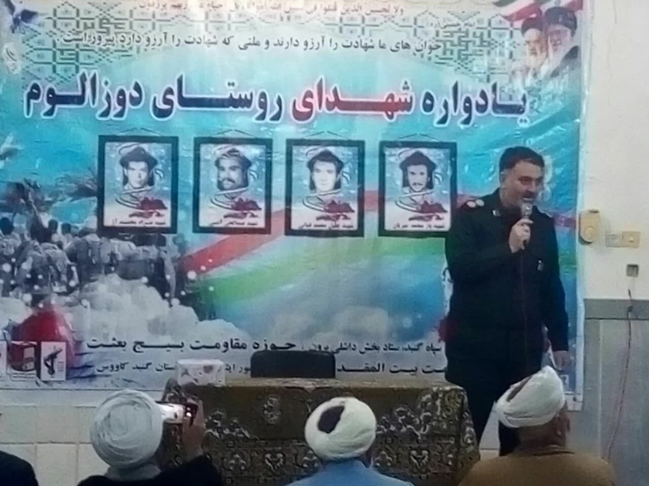 به گزارش خبرنگار ترکمن سسی از روستای دوزالوم، مراسم با تلاوت آیاتی از قرآن کریم توسط غفار آخوند سخاوی آغاز شد. حاج مدد آقا هوشمند امام جمعه شهر مرزی اینچه برون و مدیرحوزه علمیه رحمانیه دوزالوم با عرض خیرمقدم به مهمانان در این مراسم از مقام رفیع و ارزش های شهدا سخن گفت.