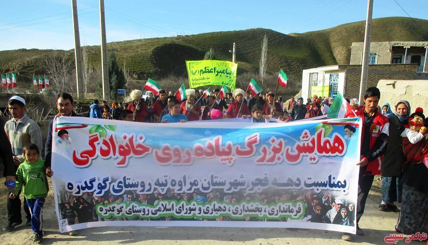 به گزارش خبرنگار ترکمن سسی در دومین روز از دهه فجر انقلاب اسلامی همایش پیاده روی خانوادگی و جشن انقلاب با حضور مسئولین شهرستان مراوه تپه در روستای گوکدره برگزار گردید.