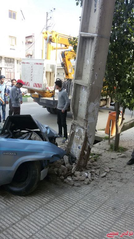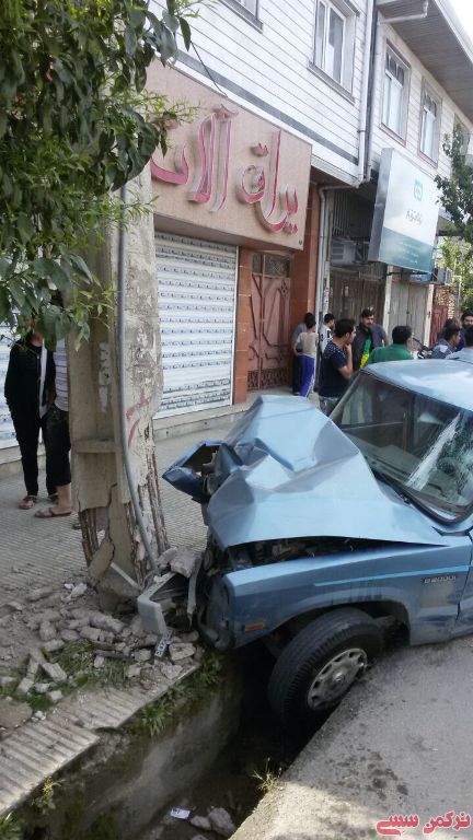 تركمن سسي-بعدازظهر سه شنبه یک دستگاه خودروی باربری مزدا با تیربرقی در خیابان عباس آباد کردکوی برخورد کرد که منجر به افتادن تیر برق بر روی خانه یکی از شهروندان شد.