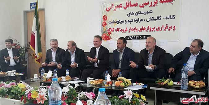 تركمن سسي - رئيس و اعضاي كميسيون عمران مجلس شوراي اسلامي به اتفاق معاون وزير راه و شهرسازي و رئیس سازمان هواپیمایی کشوری در سفري يكروزه به گلستان، به بررسي مسايل عمراني شهرستان هاي كلاله، گاليكش، مراوه تپه و مينودشت پرداختند.