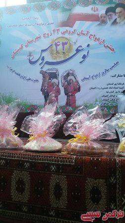 تركمن سسي - همزمان با هفته ازدواج آسان 43 زوج جوان گمیشانی در مراسمی با حضور مسوولان استانی و شهرستانی ،جشن ازدواج خود را در محوطه موزه مردم شناسی شهر گمیش تپه برگزار کردند.