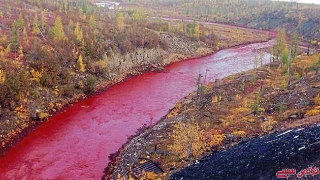ترکمن سسی-آب رودخانهای در شهر نوریلسک در شمال روسیه به رنگ قرمز روشن درآمده است.