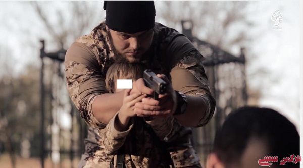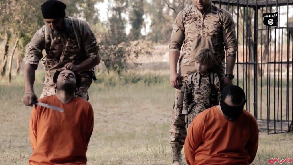 عناصر گروه تروریستی داعش در این ویدیو ۸ نفر را مقابل یک کودک که چهرهای اروپایی داشت گردن زدند، و سر آنان را روی جسدشان قرار دادند.