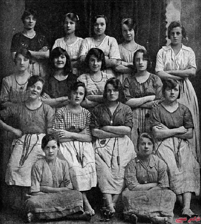 در این تصویر، 15 دختر به چشم می خورند که گفته می شود در یک آسیاب کار می کردند. همه این دختران دستهایشان را به صورت ضربدری قرار داده اند. اما نکته عجیب، وجود یک دست بر روی کتف یکی از دختران در سمت چپ ردیف دوم است. این در حالی است که دختری که پشت سر وی ایستاده است، دستهای خود را به حالت ضربدری روی هم گذاشته است و به عبارت دیگر، دست روی کتف دختر ردیف دوم، متعلق به دختر ردیف اول نیست. این امر باعث شده است تا عده ای بر این باور باشند که دست مذکور، متعلق به یک شبح یا فردی که در تصویر نشان داده نشده است باشد. همچنین احتمال رایج، تغییر در این تصویر با استفاده از تکنولوژی جدید می باشد.