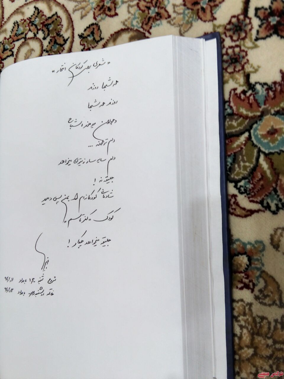 *تصویر فوق دست خط این شاعر ترکمن است.