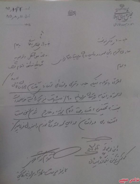 نکته جالب این است که محمد باقر نوبخت،نامه ی این دو نماینده را پاراف کرده و خطاب به رحمانی می نویسید: