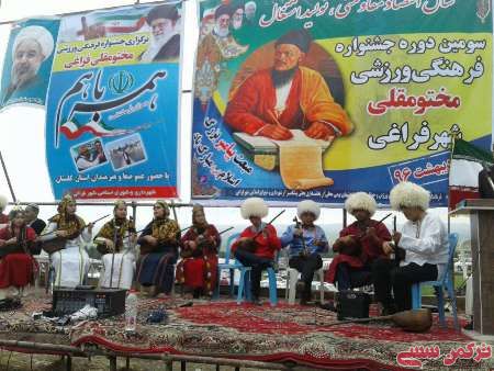 تركمن سسي - سومین دوره جشنواره فرهنگی ورزشی مختومقلی، همزمان با بزرگداشت بعثت رسول مکرم اسلام( ص) با حضور هزاران نفر، ده ها گروه فرهنگی هنری و تیم های کشتی سنتی گورش، در شهر فراغی شهرستان کلاله در شرق استان گلستان برگزار شد.