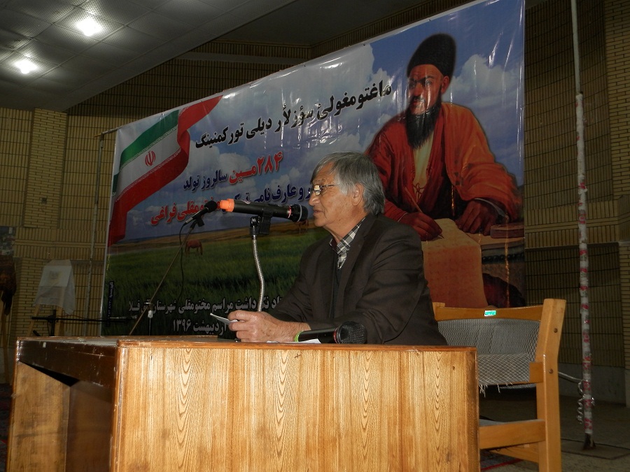 تركمن سسي - مراسم نکوداشت دویست و هشتاد و چهارمین زاد روز شاعر و عارف نامی ترکمن ، "مختومقلی فراغی " عصر چهارشنبه ششم اردیبهشت ماه ، با حضور مسئولين محلي ،  شاعران و هنرمندان شهرستان در مجتمع فرهنگی هنری اداره فرهنگ و ارشاد اسلامی شهر آق قلا برگزار شد.