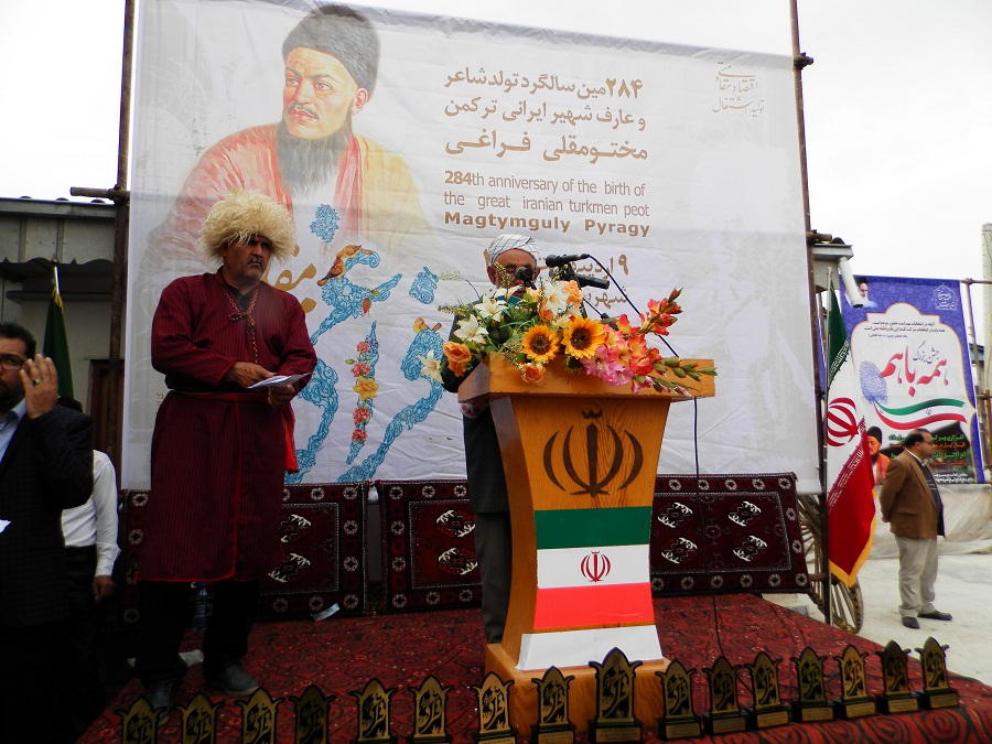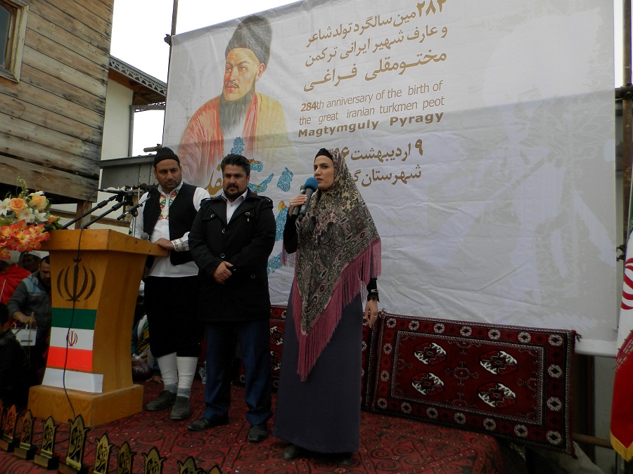 تركمن سسي - مراسم بزرگداشت 284مین سالگرد عارف و شاعر بزرگ ایرانی ترکمن مختومقلی فراغی در محل موزه مردم شناسی گميشان با حضور نبیره مختومقلی فراغی ، مسئولين استاني و شهرستاني و عموم مردم برگزار شد.