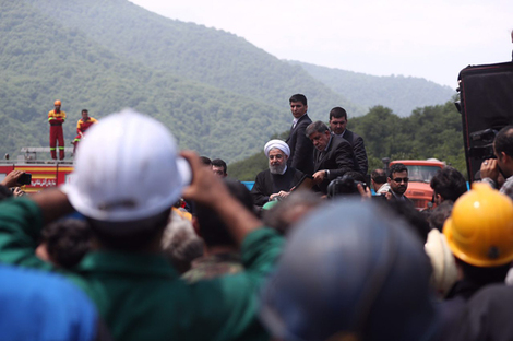 ترکمن سسی - رئیس جمهور پس از دیدار و گفت و گو با جمعی از خانواده های کارگران مصدوم و جانباخته حادثه انفجار معدن زمستان یورت در شهر نوده خاندوز آزادشهر، وارد محل این معدن شد و با معدنکاران سخن گفت.