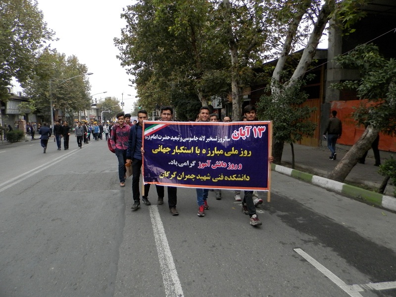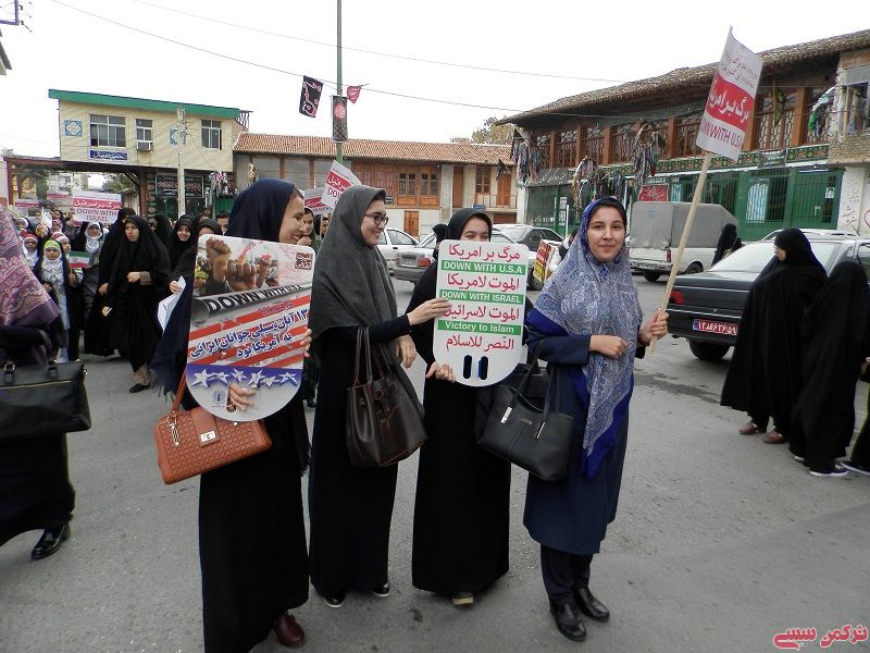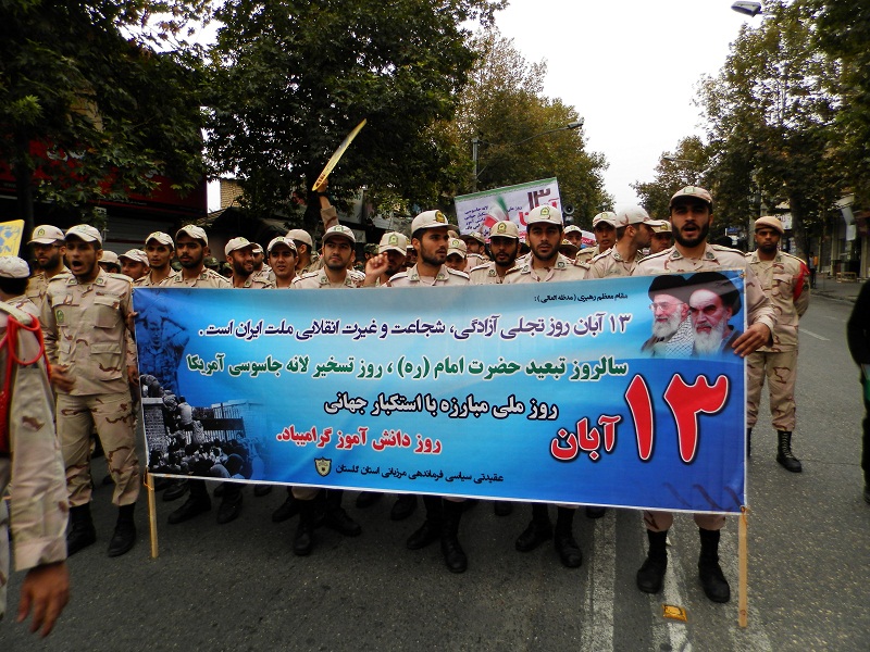 به گزارش خبرنگار تركمن سسي ، راه پيمايان 13 آبان امسال از همه قوميت ها يكدل و هم صدا در سراسر استان گلستان در روز ملي مبارزه با استكبار جهاني با شعارهای الله اکبر، مرگ بر آمریکا و مرگ بر اسرائیل و سر دادن نداي تبعیت از رهبري مراسم با شكوهي رقم زدند.
