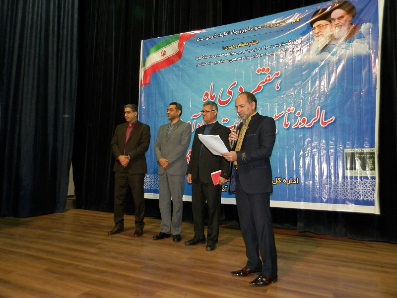 ترکمن سسی- به مناسبت فرا رسیدن 7 دی ماه سالروز تشکیل نهضت سوادآموزی به فرمان حضرت امام خمینی(ره) ، مراسم بزرگداشت هفته سوادآموزی در گلستان قبل از ظهر چهارشنبه 6 دی ماه در کانون طه گرگان برگزار شد.