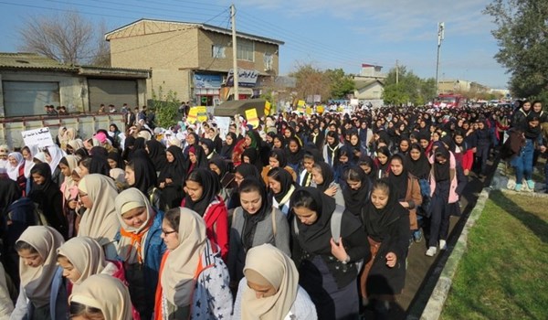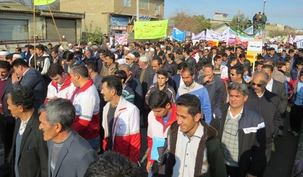 شرکتکنندگان این راهپیمایی باشکوه پس از تجمع در میدان وحدت شهر با حرکت در مسیر گلزار شهدای گمنام ضمن حمایت قاطع از آرمانهای امام راحل، نظام مقدس جمهوری اسلامی و مقام معظم رهبری، انزجار و نفرت خود را از دسیسههای استکبار جهانی سر دادند.