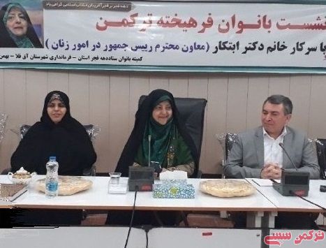 تركمن سسي- بانوان فرهیخته ترکمن به مناسبت دهه فجر شامگاه شنبه 14 بهمن ماه با خانم ابتکار معاون رییس جمهور در امور زنان و خانواده در سالن جلسات فرمانداری شهرستان آق قلا ديدار كردند.