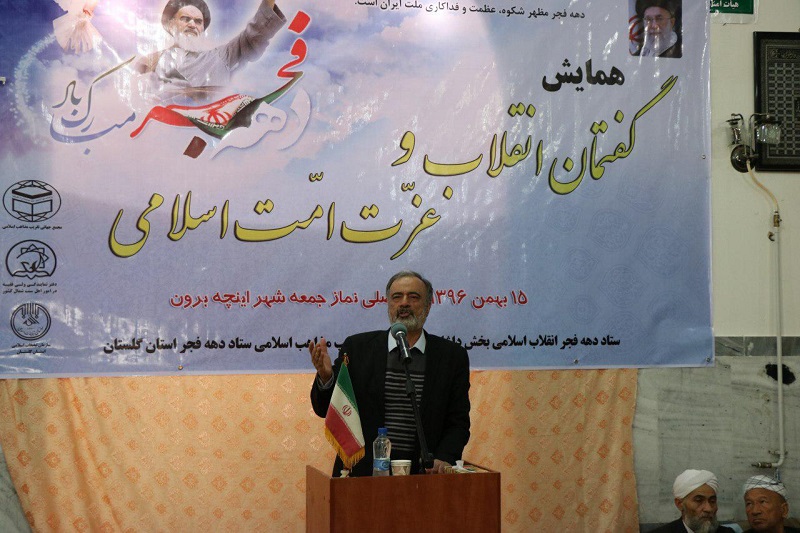 ترکمن سسی- به مناسبت ایام الله دهه مبارک فجر قبل از ظهر امروز یکشنبه ۱۵ بهمن ماه ۹۶ ، همایش گفتمان انقلاب و عزت امت اسلامی در مصلی شهر مرزی  اینچه برون برگزار شد.