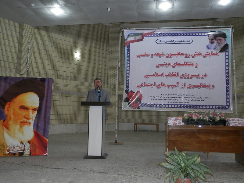 این همایش به مناسبت ایام الله دهه مبارک فجر با حضور فرماندار شهرستان آق قلا ، حاج آقا دیلم معاون مرکز بزرگ اسلامی شمال کشور ، حاج آقا سایری معاون فرهنگی سازمان تبلیغات اسلامی استان گلستان و مسئولین انتظامی و علمای اهل سنت شهرستان آق قلا و جمعی از شهروندان قبل از ظهر امروز برگزار شد.