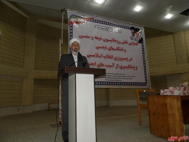 ترکمن سسی- امام جمعه اهل سنت شهرستان آق قلا در همایش نقش روحانیون شیعه و سنی و تشکل های دینی در پیروزی انقلاب اسلامی و پیشگیری از آسیب های اجتماعی اظهار کرد: پیروزی انقلاب اسلامی با رهبری بی نظیر حضرت امام خمینی (ره) و وحدت و اتحاد مردم به دست آمد.