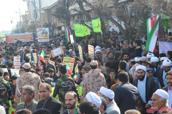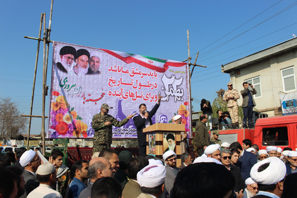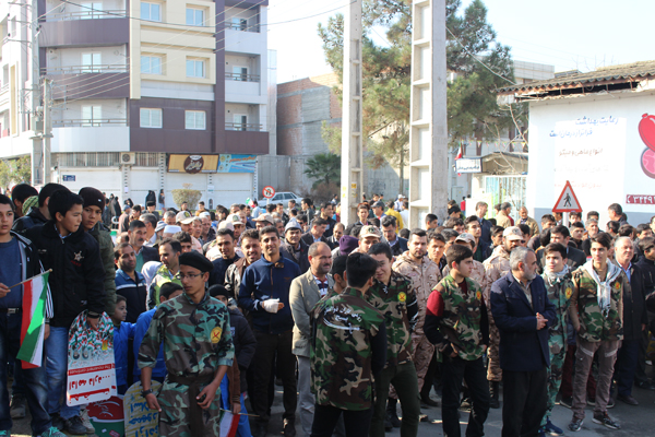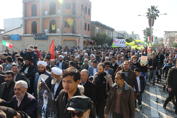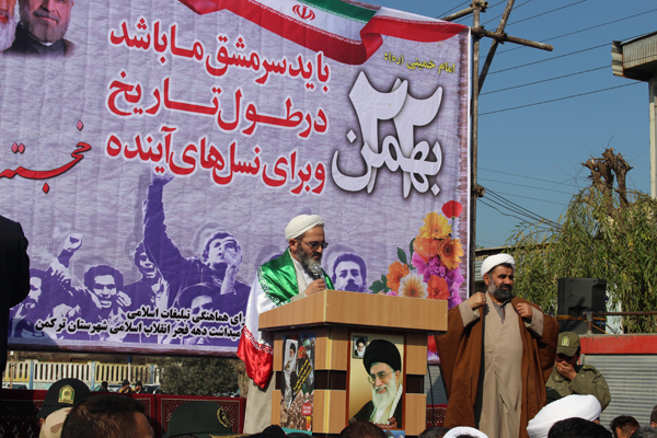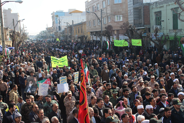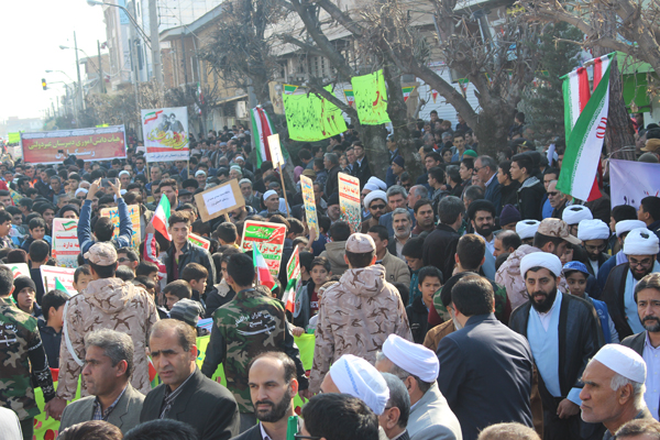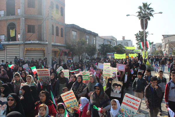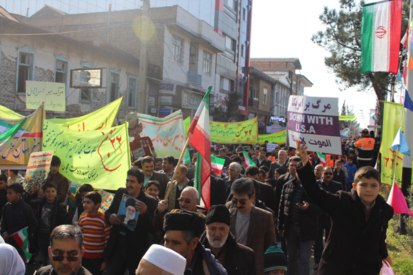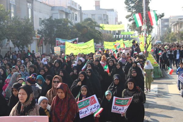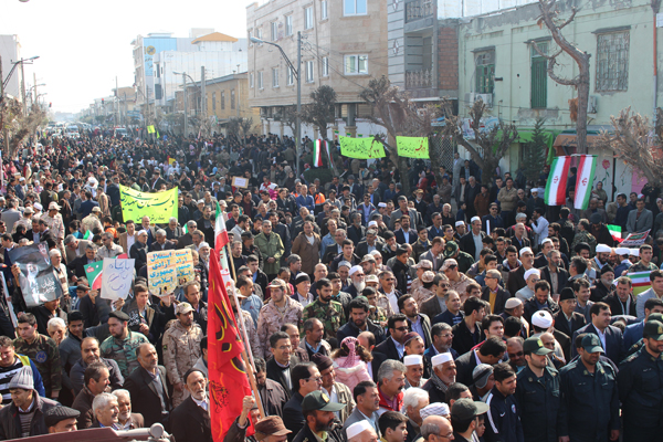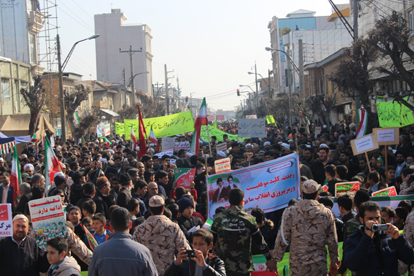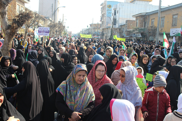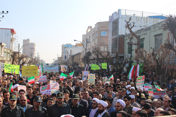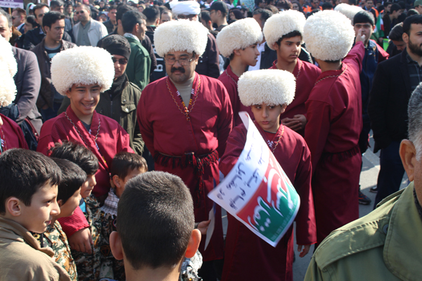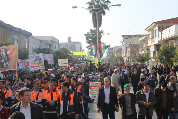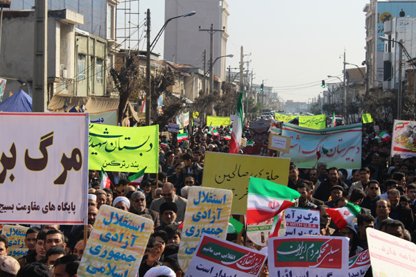 به گزارش ترکمن سسی ،راهپيمايي كنندگان در حالي كه امام جمعه، فرماندار، روحانيون و مسوولان را در پيشاپيش خود داشتند با سر دادن شعارهاي مرگ بر آمريكا، مرگ بر اسراييل، اي رهبر آزاده آماده ايم آماده و 22 بهمن ماه يوم الله است يوم الله در صفوفي به هم فشرده به طرف چهارراه شهید کاسب حركت كردند./ آوای ترکمن