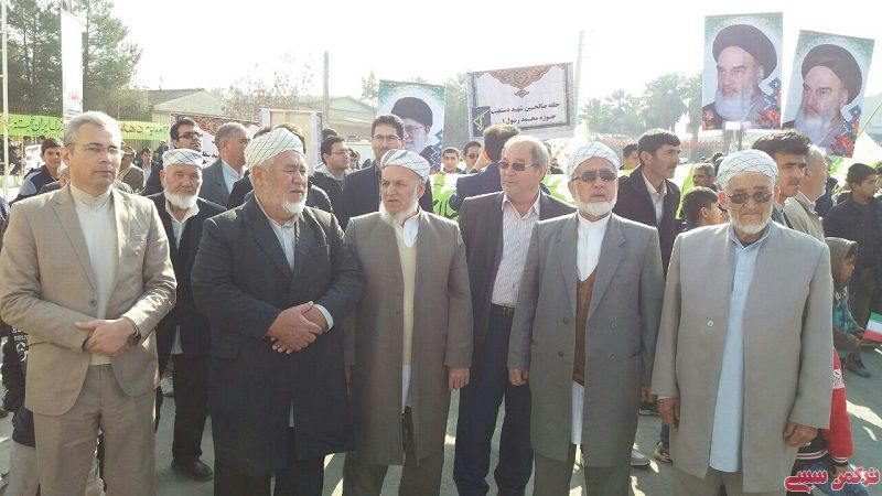امیر شیر توماج فرماندار، حاج آخوند بایرام گلدی نبوی نژاد امام جمعه اهل سنت و جمعی کثیری از مدیران شهرستانی دوشادوش مردم در این راهپیمایی حضور داشتند.