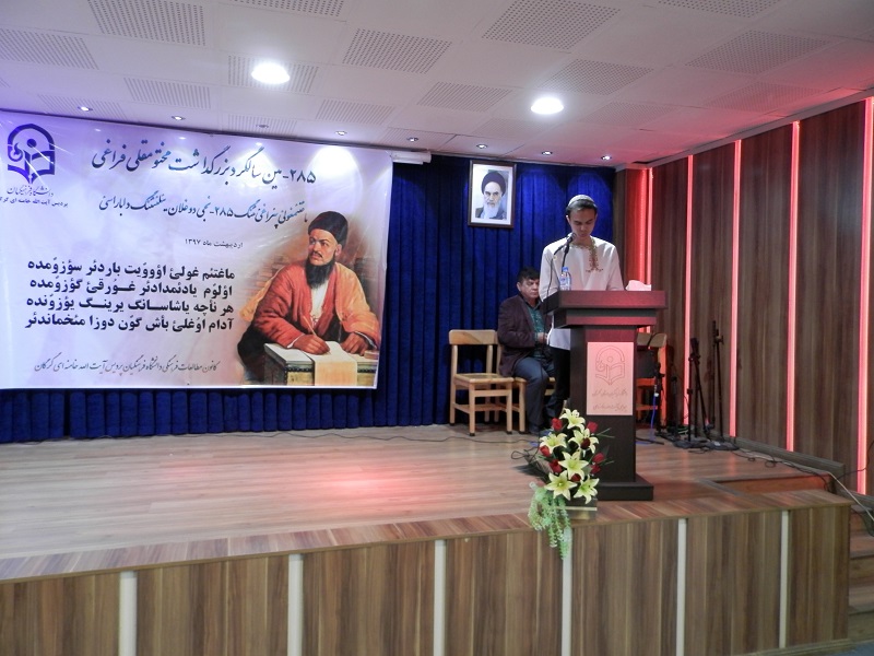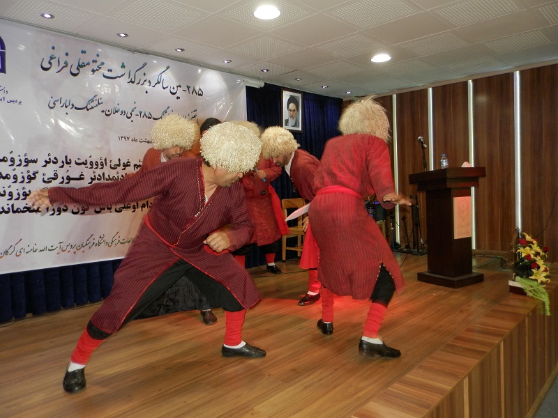 ترکمن سسی- مراسم بزرگداشت  285 -مین سالروز تولد شاعر و عارف شهیر ترکمن مختومقلی فراغی صبح امروز سوم اردیبهشت ماه 1397 با حضور جمعی از دانشجویان و دوستداران فرهنگ و ادب ترکمنی در دانشگاه فرهنگیان گرگان برگزار شد.