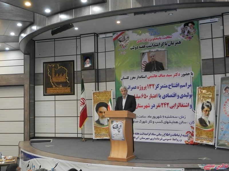 به گزارش خبرنگار ترکمن سسی از محل برگزاری این مراسم 132 پروژه عمرانی ،تولیدی و اقتصادی هفته دولت شهرستان آق قلا با اعتبار 650 میلیارد ریال و اشتغالزائی 242 نفر،امروز بصورت متمرکز با حضور معاون هماهنگی امور اقتصادی و توسعه منابع استانداری افتتاح و کلنگ زنی شد.