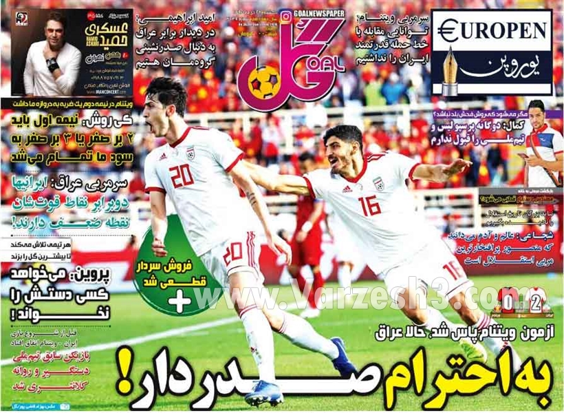 سردار آزمون با این بازی تماشایی خود پاسخ منتقدان را داد و با توجه به آمادگی خوب وی احتمالا در ادامه جام نیز خبرهای خوبی از سردار خواهیم داشت. بهر حال اکنون که تیم ایران یکدست و آماده با نفرات با قابلیتی است امیدواریم با تلاتش کادر فنی و بازیکنان مسیر چهارمین قهرمانی ایران در جام ملت های اسیا فرهم شود.