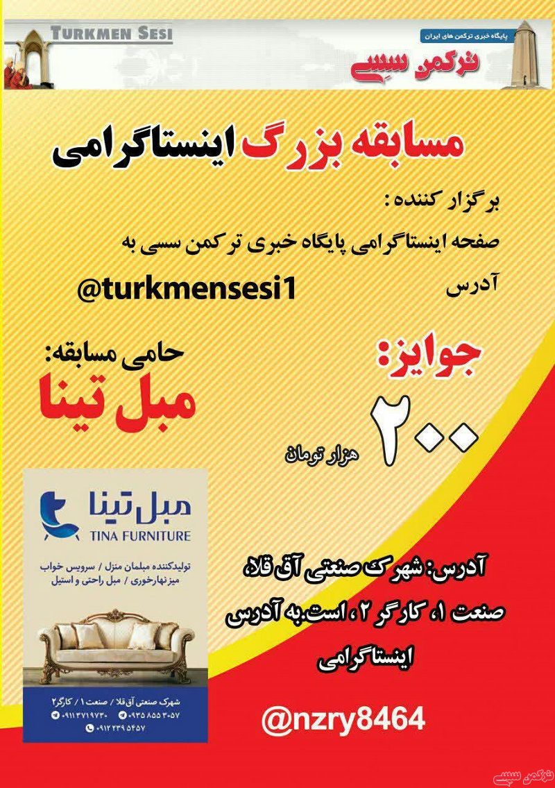 شرکت کنندگان محترم برای شرکت در این مسابقه به صفحه اینستاگرامی ترکگمن سسی به آدرس زیر مراجعه فرمایند.@turkmensesi1