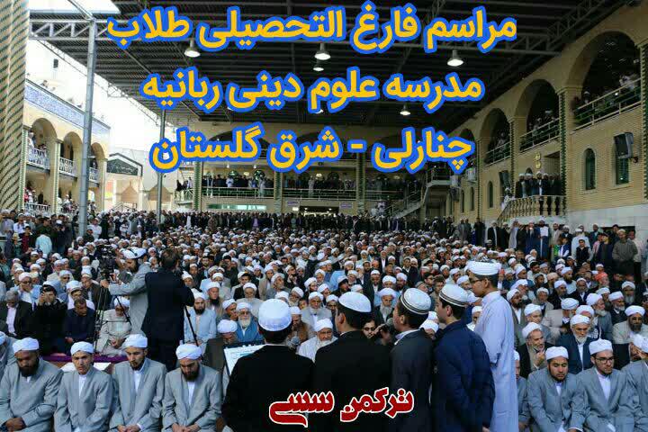 ترکمن سسی - بیست و دومین مراسم فارغ التحصیلی طلاب مدرسه علوم دینی ربانیه چنارلی در شرق استان گلستان امروز پنج شنبه ۵ اردیبهشت ماه ۱۳۹۸ با حضور گسترده علما ، طلاب و مردم متدین منطقه برگزار شد.