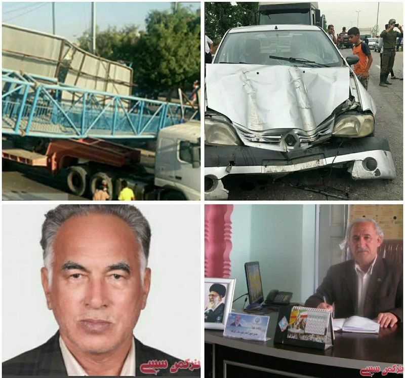 ترکمن سسی - با خبر شدیم که در حادثه سقوط پل هوایی عابر پیاده روی وسیله نقلیه تندر ۹۰ که روز شنبه ۹۸/۴/۱۵ حوالی مسیر تقی آباد و قرق رخ داده بود سرنشینان خودروی حادثه دیده دو نفر از چهره های مردمی و فعال منطقه ترکمن صحرا بوده اند.