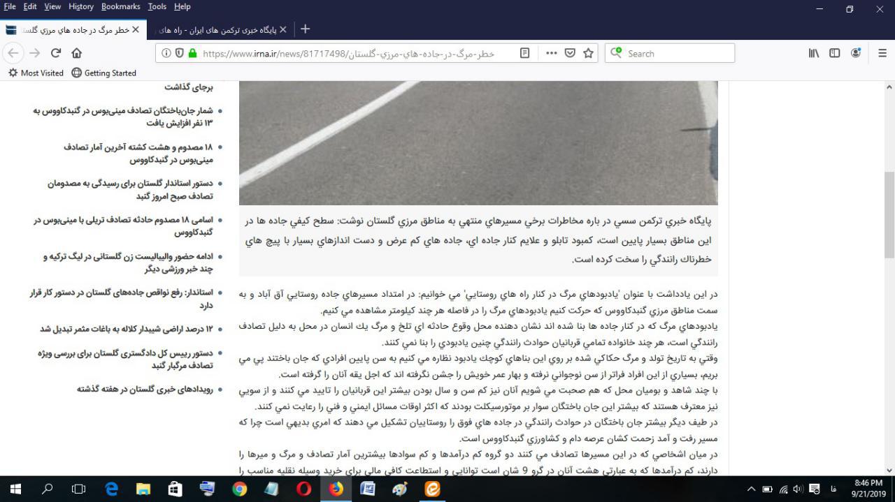 بهرحال این رسانه همچنان در راستای ایفای وظایف ذاتی رسانه ای خود به انعکاس این مشکلات ادامه خواهد داد تا شاید بتواند نقشی هرچند اندک در کاهش آلام شهروندان گلستانی از خسارات جانی و مالی حوادث جاده ای داشته باشد.